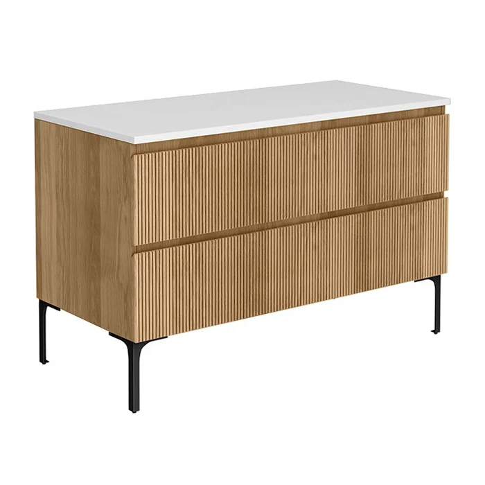 A simple, elegant countertop basin sits atop the vanity, paired with high-quality taps in a choice of classic Chrome, modern Black, or warm Brushed Brass.