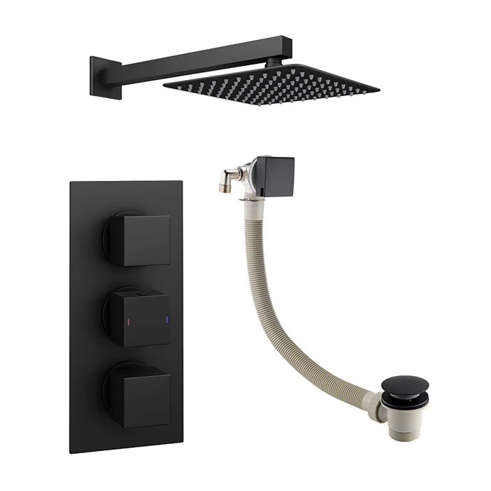 Experience a superior shower with our advanced thermostatic systems. Choose the classic Round Shower Head with a separate handset or the innovative 2-Outlet System with an overflow bath filler for a clean, integrated design.